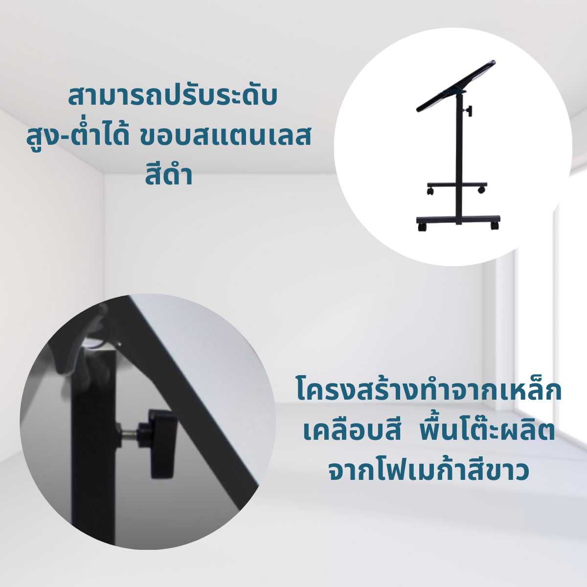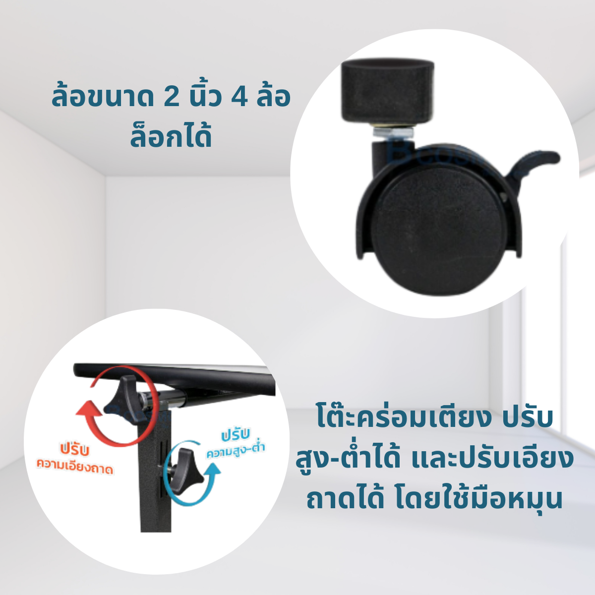 - ปรับสูง-ต่ำได้ ตั้งแต่ 70-110 ซม.โดยใช้มือหมุน