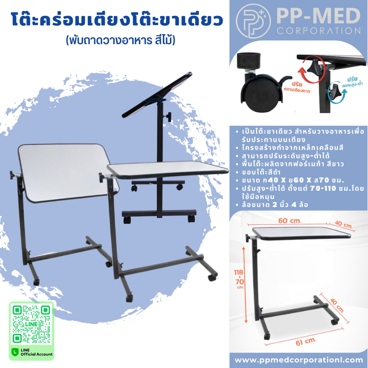 - เป็นโต๊ะขาเดียว สำหรับวางอาหารเพื่อรับประทานบนเตียง