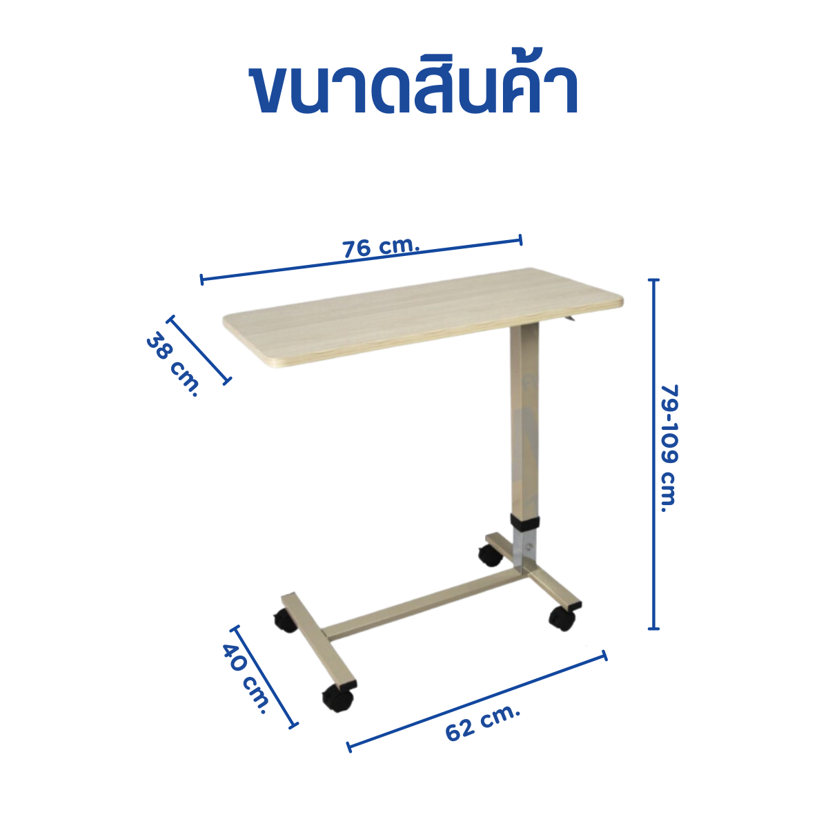 ขนาดโต๊ะคร่อมเตียง กว้าง x ยาว x สูง = 38 x 76 x 79-109 ซม.