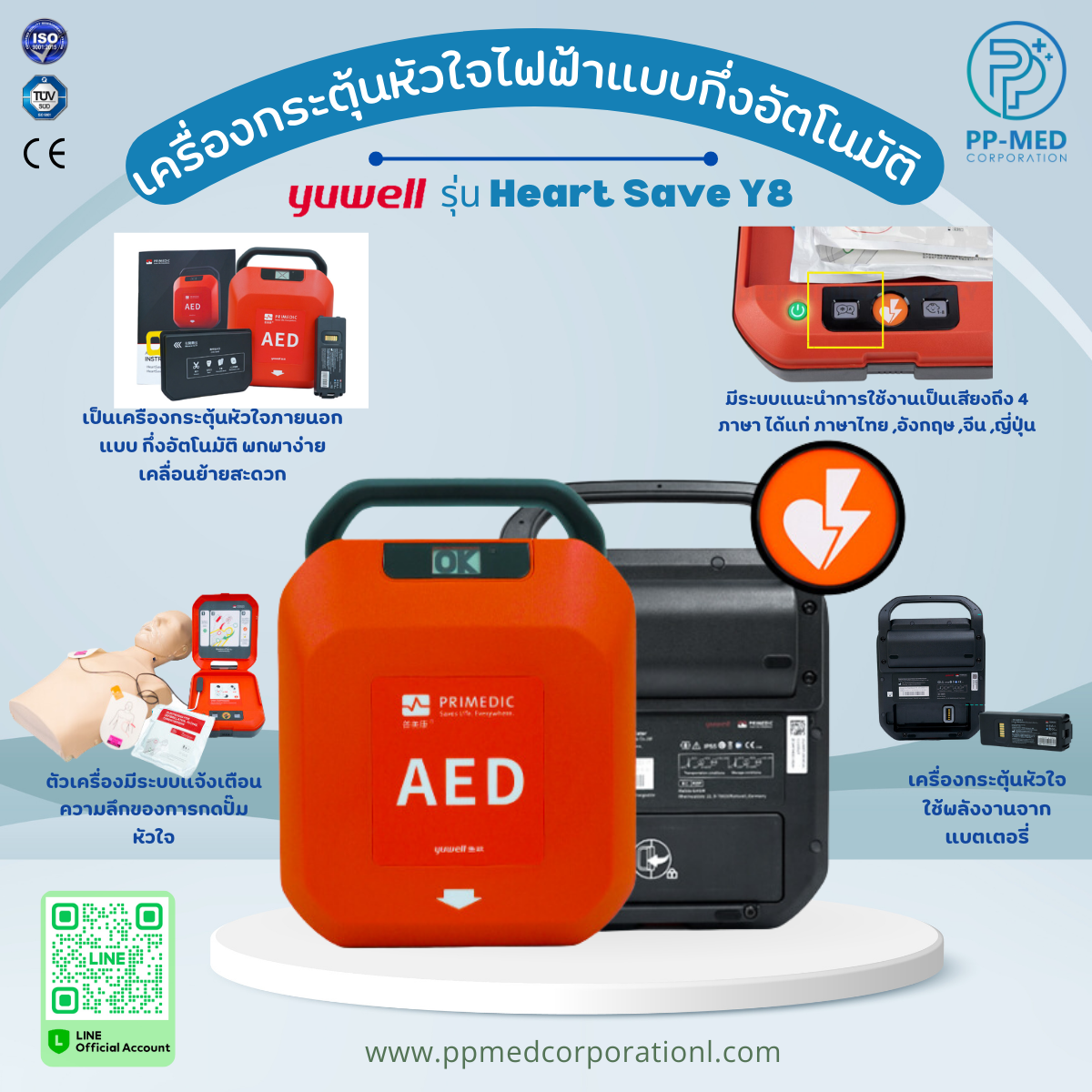 เครื่องกระตุ้นหัวใจไฟฟ้าแบบ กึ่งอัตโนมัติ Yuwell รุ่น Heart Save Y8