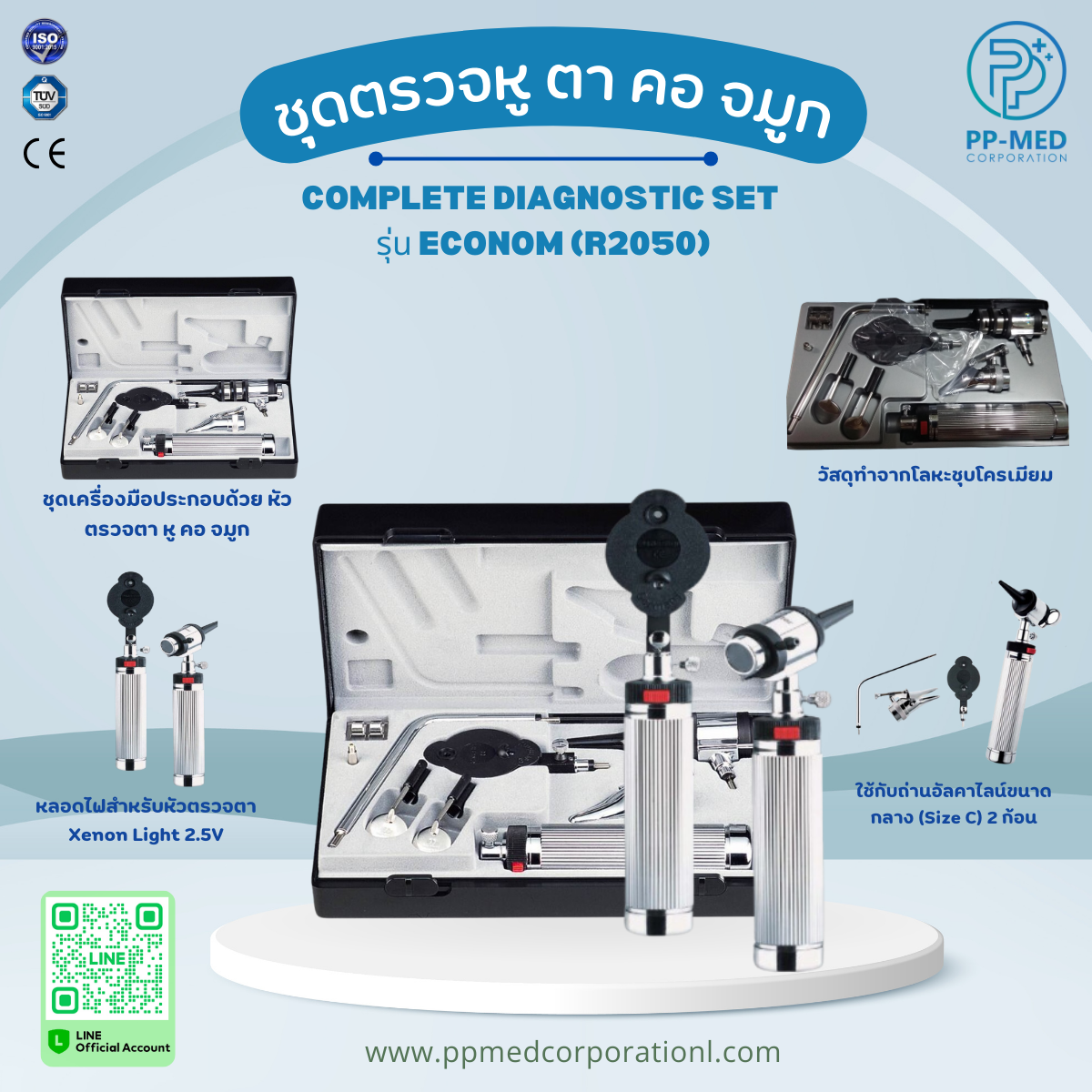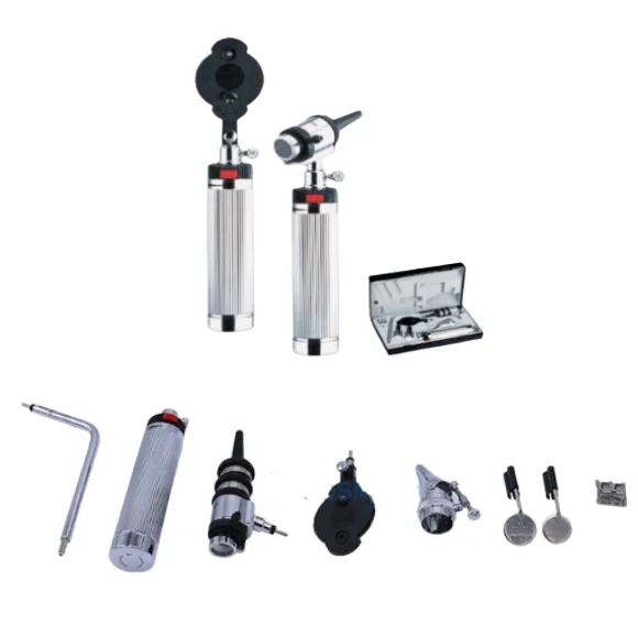 ด้ามจับ (Battery handle) ชุดตรวจหู และอุปกรณ์ (Otoscope and accessories) ชุดตรวจตาและอุปกรณ์ (Ophthalmoscope and accessories) Bent arm illuminator and accessories ชุดตรวจจมูก Tongue blade holder กระจกส่องคอ