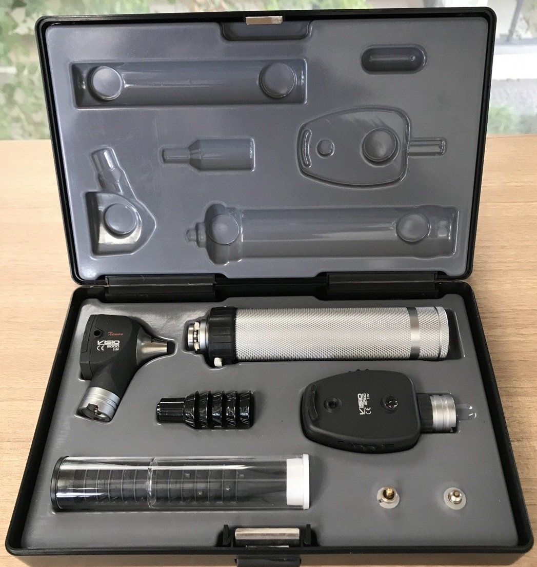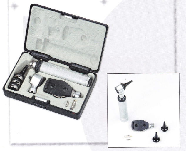 • ชุดเครื่องมือตรวจ ตา หู ประกอบด้วย เครื่องตรวจตา (Ophthalmoscope), เครื่องตรวจหู (Otoscope), ด้ามจับ (Handle) และกล่องใส่ (Case)