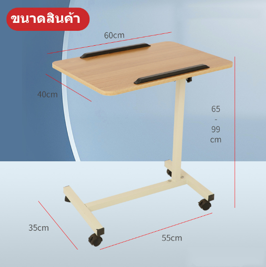 โต๊ะคอมข้างเตียง โต๊ะคอม ยกขึ้นลงได้ มันขยับได้มีล้อ พับได้ 90 องศา ประหยัดพื้นที่ โต๊ะทำงาน